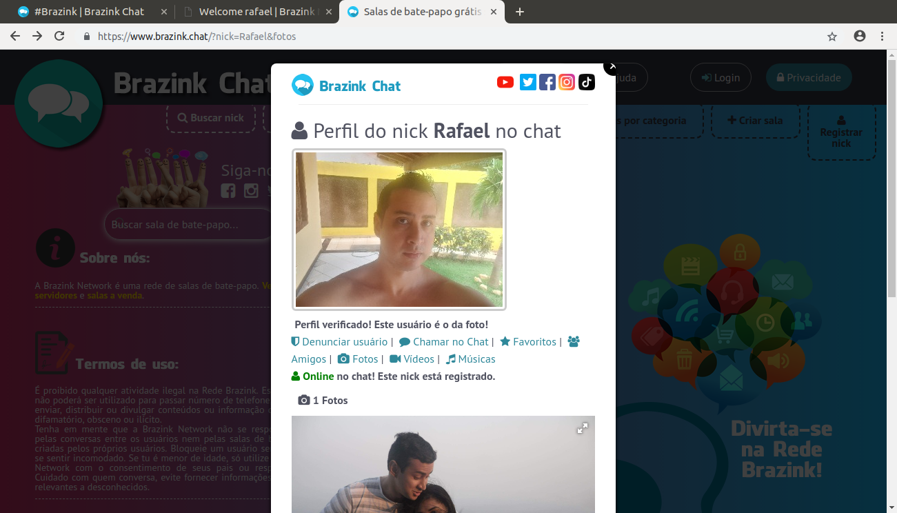 Pode adicionar suas redes sociais, seu álbum de fotos, e vídeos, olha aí https://www.brazink.chat/perfil.png